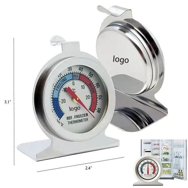 Our Instant Read Oven Thermometer's material is Stainless Steel, size is 3.1" H x 2.4" W. Support customized yours logo.Our oven thermometer is nice for traditional ovens, toaster ovens, grills or other heat based food appliance, and it has large dial, clear blue and red zones indicator on the face of the thermometer, which makes you easy to read the oven temperature. It has a hook and panel design, so it can be hung or stood for easy installation in different places, mechanical thermometer reads instantly and without the need for battery power. The thermometer is made of high quality material, glass lens and stainless steel construction is resistant to corrosion.