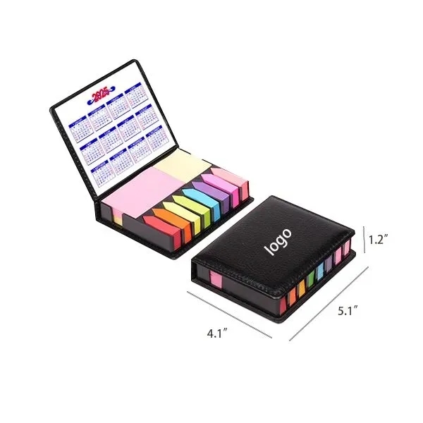 Our Calendar Sticky Flags Notepad's material is Cover material pvc, size is 4.1" W x 5.1" L x 1.2" T. Support customized yours logo.Searching for a practical gift for your office or school? This memo organizer is an excellent choice. Featuring 10 distinct note sets neatly arranged within the cover, it ensures effortless organization and note-taking. A calendar page is attached to the inner front cover for added convenience. The leather cover can be customized with your logo, making it a great promotional item for your company. Pricing is based on sea shipping, with rush service available on our website.