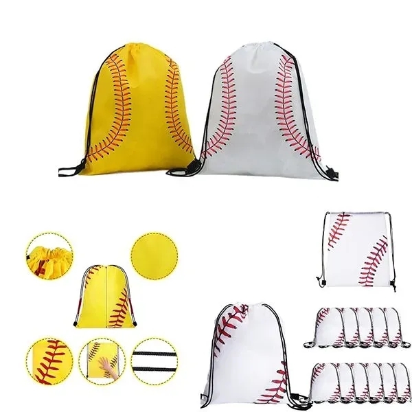 Our Baseball Shape Drawstring Bag's material is Polyester, size is 13.4" W x 15.7" H. Support customized yours logo. The ball shape drawstring bag is great for company or Baseball events, theme parks, education, team sports and more. It has drawstring closure on main compartment, front slip pocket with custom tab and hook-and-loop closure. Both reusable and recyclable, this drawstring bag comes in a wide selection of logo to match your school, team or corporate colors.