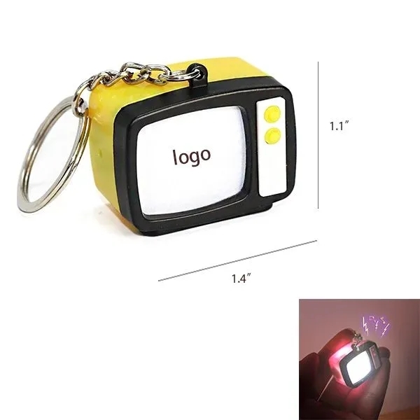 Our LED Light-Up TV Keychain's material is plastic, size is 1.4"W x 1.1" H. Support customized yours logo. This LED light-up TV keychain is the perfect mix of fun and functionality. It's not just a keychain-it's a mini TV that lights up and makes sounds, giving it that extra flair. Perfect for adding a bit of personality to your keys or bag, this novelty keychain will turn heads wherever you go. The bright LED lights create a cool glow, while the sound effects add an extra layer of charm. It's a great gift for TV lovers, movie buffs, or anyone who enjoys quirky, unique accessories. Small, lightweight, and durable, it's built to last and adds a playful touch to your everyday essentials. Whether you're using it for keys, backpacks, or purses, this keychain is a fun way to show off your styl