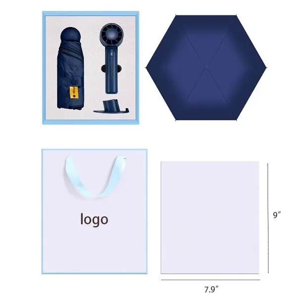Our Summer Fan and Umbrella Set Box's material is Fan material Plastic and umbrella material Impact cloth, size is 7.9" W x 9" H. Support customized yours logo. Check out our popular gift set-includes a fan and umbrella, perfect for holidays, birthdays, and business events. Great for schools, offices, and trade shows. Available in bold colors with custom logo options. ESP price is based on sea shipping for 100 pcs. For rush service or details on stock, lead time, or packing, please contact us or visit our website.
