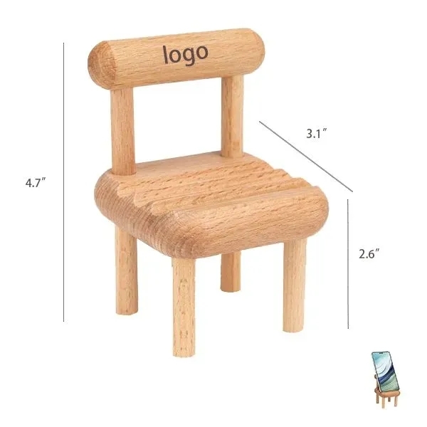 Our Chair Shape Phone Holder's material is natural wood, size is 4.7" H x 3.1" W. Support customized yours logo. Made of natural wood, does not contain any harmful substances, and is friendly to the environment and human body. It is simple and elegant in wood color, suitable for any style of home. It has a cute little chair shape, delicate details and a smooth touch that gives a warm and cozy feel. This small chair can accommodate all sizes of mobile phones, tablets, e-readers, and enjoy a comfortable Angle when watching videos, reading, studying, and working. It's even a pretty ornament in itself. You can also use it as a photo frame holder to display your favorite pictures, memories.