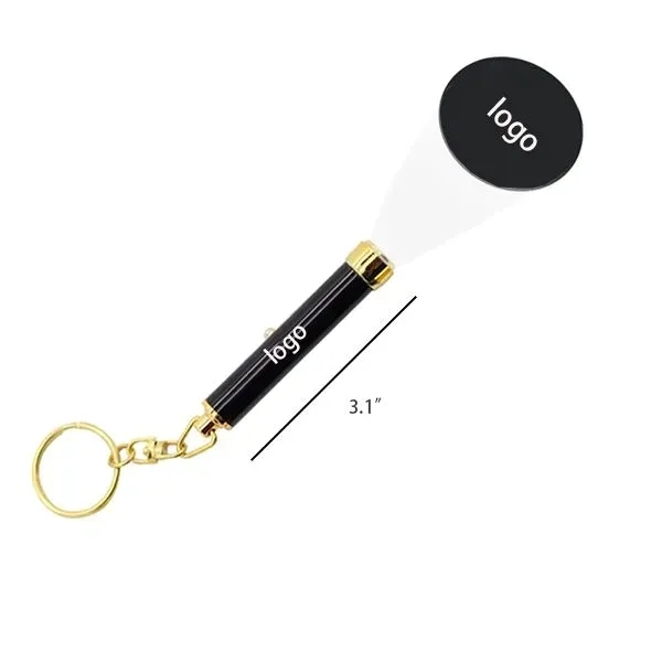 Our LED Projection Flashlight's material is Aluminum alloy +ABS, size is 3.1" L. Support customized yours logo. This custom laser projection keychain is the ultimate mix of practicality and fun. It's not just a keychain, but a unique way to showcase your brand or logo. With the push of a button, it projects your logo or a custom design on any surface, making it a great promotional tool for events, trade shows, portable keychain is a great conversation starter. It's not just practical, it's a cool tech gadget that lights up your logo wherever you go. Perfect for businesses looking to stand out in a crowded market or for anyone who loves a personalized, functional accessory.