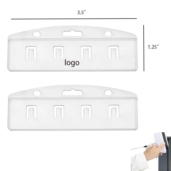 Our Easy Access Card Holder's material is plastic, size is3.5" W x 1.25" H. Support customized yours logo. EASY ACCESS CARD HOLDER: A rigid, plastic, horizontal holder, this half card holder is designed to be used with magnetic stripe cards for swiping. Make life easier with this item. The max card fit for this product is 3.38"W x 1.25"H; cards are not included. This product is an excellent choice for college campuses or hotel employees. WORLD'S FINEST AND LARGEST SELECTION OF BADGE HOLDERS.