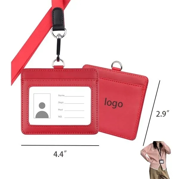 » ST11680 Leather ID Badge Holder with Lanyard