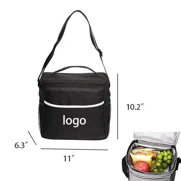 Our Lunch Cooler Bag's material is oxford cloth, size is 11" L x 10.2" H x 6.3" W. Support customized yours logo. The insulated lunch bag with premium 600D Eco-friendly Oxford Fabric and built-in EPE foam insulated material, made of ultra-thick EVA soft lining and hot-welded seams it can keep food stay cold/hot/fresh more than . The heat-welded of thermal lunch box seams to guard against leaks and easy to wipe clean with a damp cloth. With big double zippers compartment, wide-open square design can easily store your sandwiches and foods. Nice to take foods and snacks with your outdoor activities.