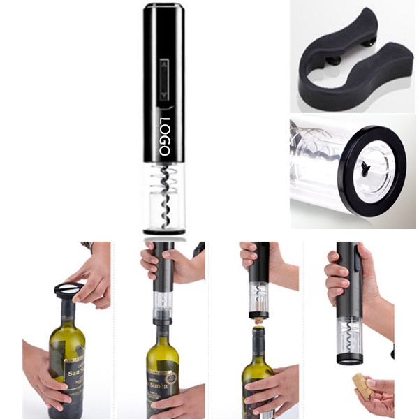 The electric wine opener is easy to use.It's started by dry battery. Curved design that stands vertically without the need for a separate base , all with the single push of a button,Easy to use, cordless electric bottle opener removes the cork in seconds, Foil cutter for easily removing seals. Your logo is welcome.